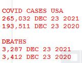 In the U. S. we are ending 2021 with 36% more cases and about the same number of deaths than in the pre-vaccine era of 2020: